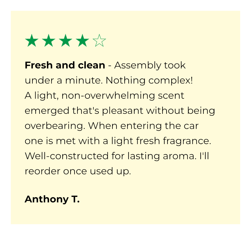 • Leave a Pleasant Impression With Every Passenger: With its clean, subtle scent filling the car, every drive is an uplifting experience for you and your passengers. Compliments guaranteed!